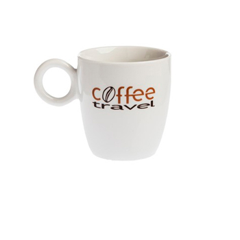 BESCHREIBUNG Weißer Porzellanbecher mit geringerer Kapazität und interessantem Ohr. Es ist möglich, einen Becher mit einer Untertasse zu vervollständigen.